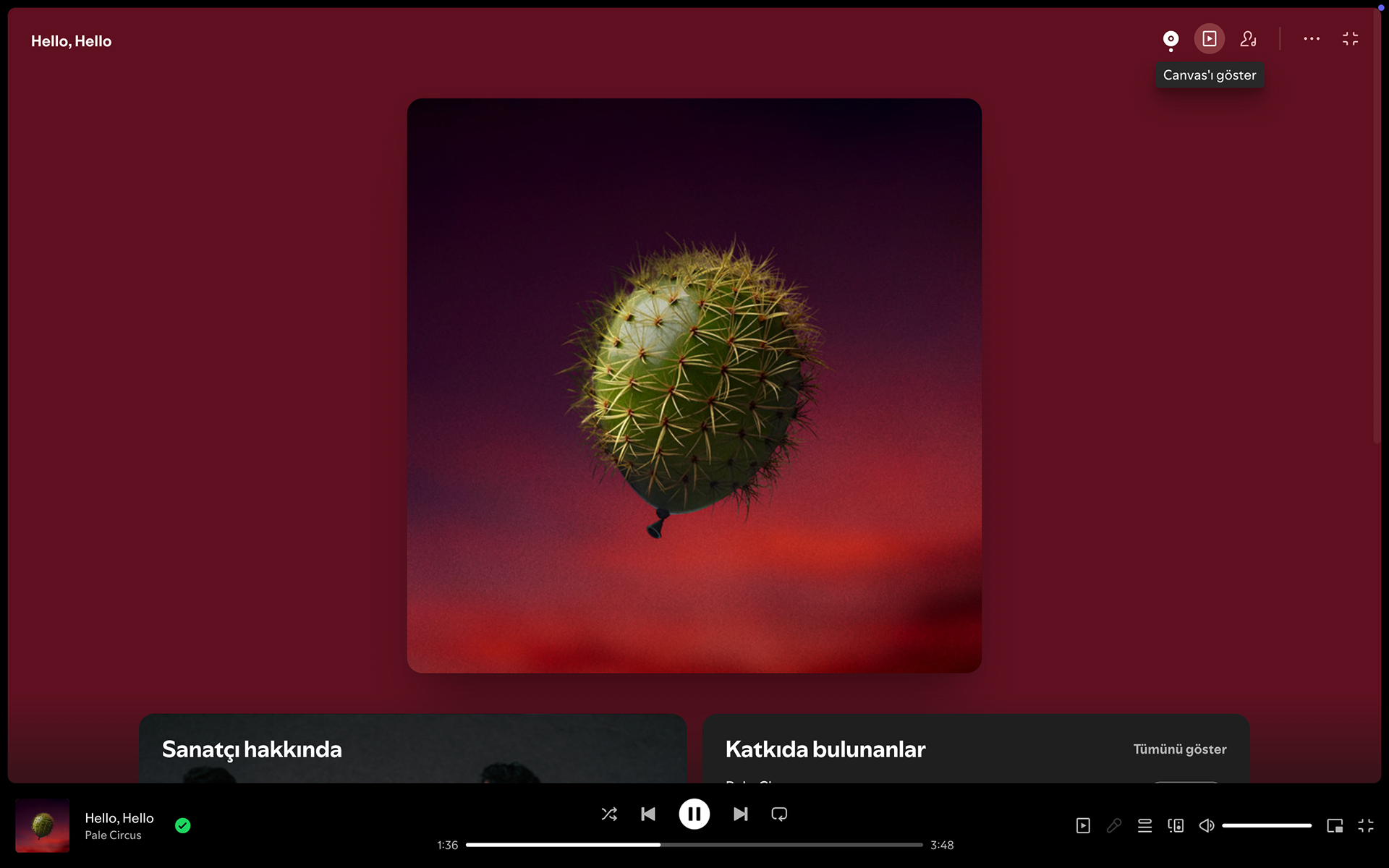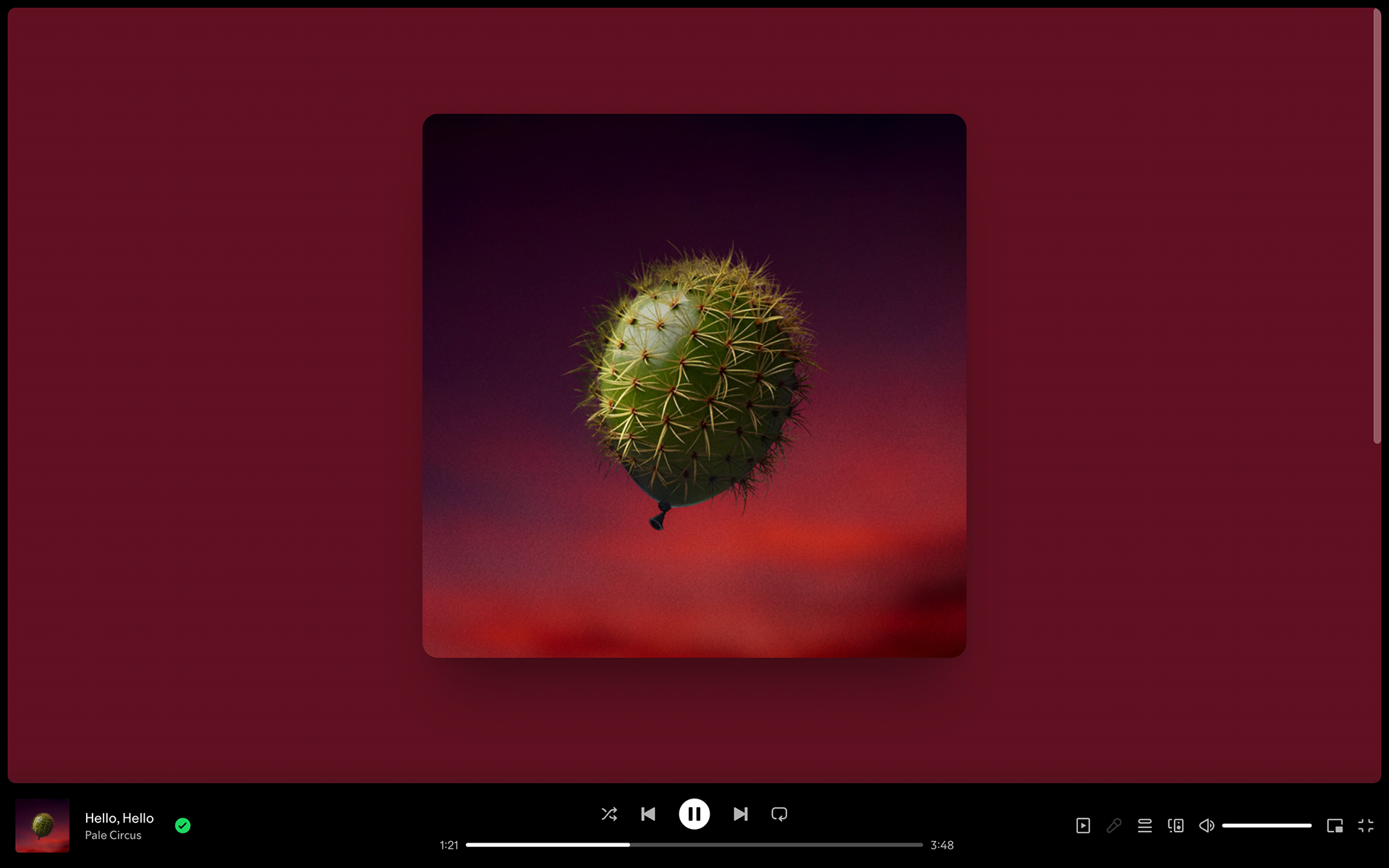 The cover artwork for first single of Pale Circus features a cactus-green balloon, covered in spines, floating through a hazy sky filled with deep red and maroon tones. The warm colors of the sky contrast with the green of the balloon, highlighting the tension between the two elements. This contrast aims to reflect the band's psychedelic sound and the trippin mood of the song.