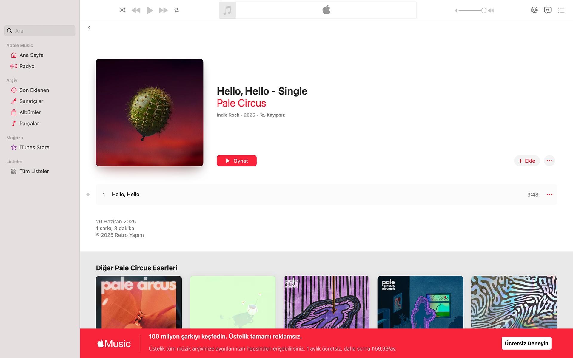 Apple Music Desktop App View - Song Page