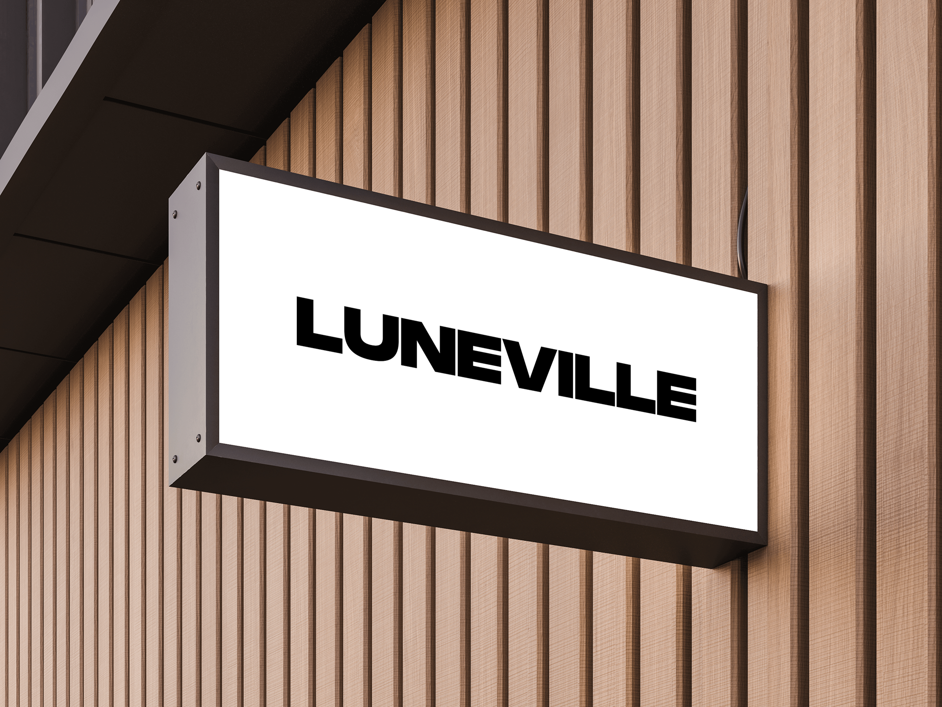 The identity system started with a black-and-white color palette, emphasizing clarity, contrast, and sophistication. The logo design uses the Monument Extended UltraBold typeface to reflect confidence and presence. I developed two logo versions: the full LUNEVILLE as wordmark for primary and formal use, and the compact LNVL lettermark for smaller-scale applications such as labels, packaging, and digital icons. This dual-logo structure enhances brand flexibility while ensuring consistent recognition across platforms.